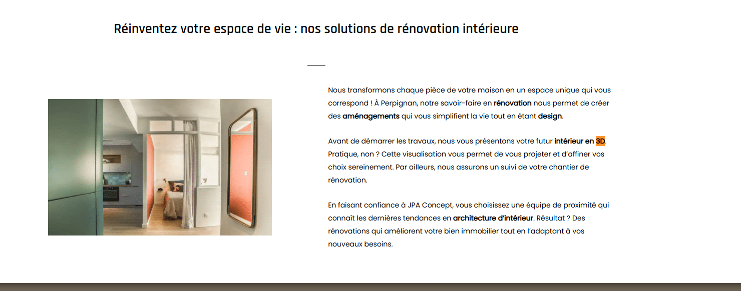 JPA Concept intervient à Saint-Cyprien avec une approche unique dans le monde de l’architecture d’intérieur : celle du binôme créatif. Basée à Perpignan, notre agence développe une expertise particulière en rénovation intérieure et en conception d’espaces commerciaux, offrant ainsi une double signature rare dans la région catalane.